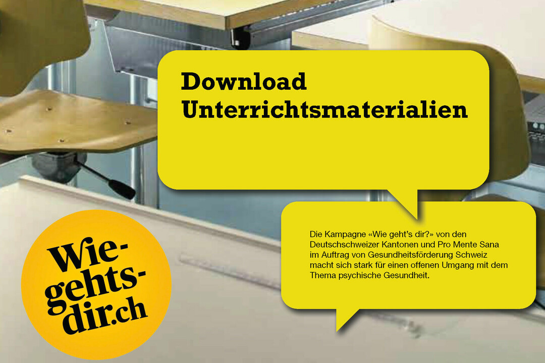 Die Trägerschaft der Kampagne «Wie geht's dir?», der wir ebenfalls angehören, hat in Zusammenarbeit mit der Pädagogischen Hochschule Luzern eine Unterrichtsmappe für die Sekundarstufen I und II zusammengestellt. Sie umfasst sechs Module zur Förderung der psychische Gesundheit.